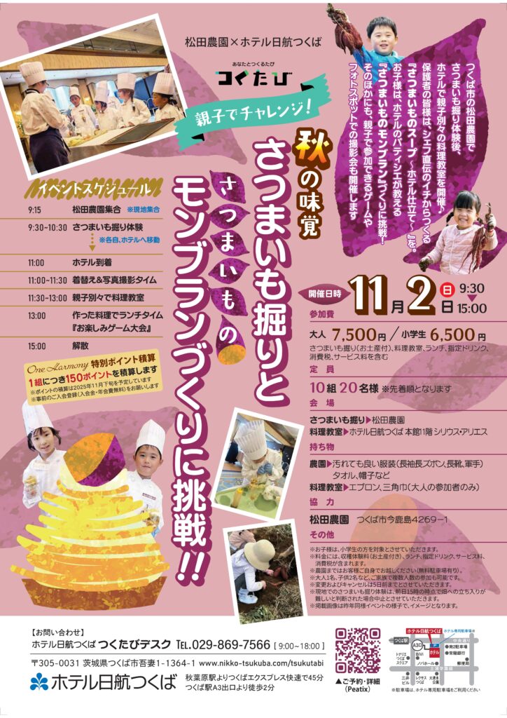 つくたび親子料理企画 11/2『秋の味覚さつまいも掘りとさつまいものモンブランづくりに挑戦』を開催!【ホテル日航つくば】