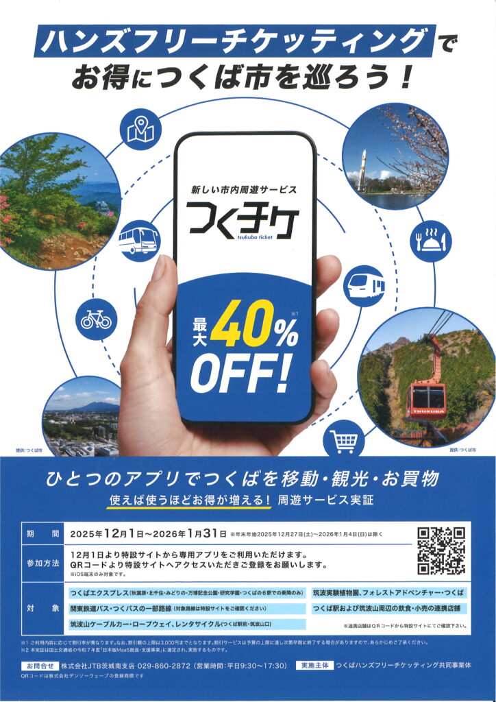 新しい市内周遊サービス“つくチケ” つくばの交通・観光・小売・飲食がスマホひとつで決済!