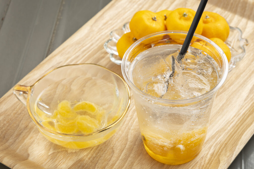 旬の福来みかんを冷凍し、皮と実ともにするおろしカットした冷凍福来みかんもグラスに入れ視覚でも楽しんでいただけるドリンクメニュー。