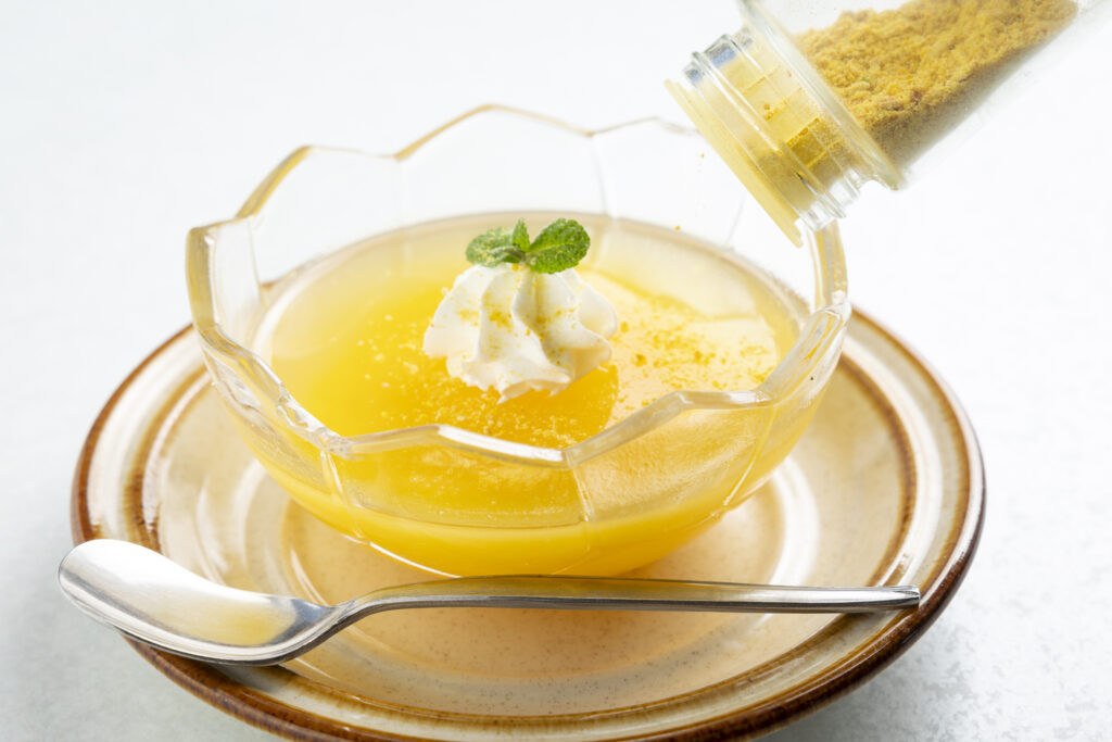福来みかん果汁100%のゼリー。爽やかな酸味と程よい苦味が余韻に残る滑らかな舌ざわりの筑波山麓ならではのゼリー。