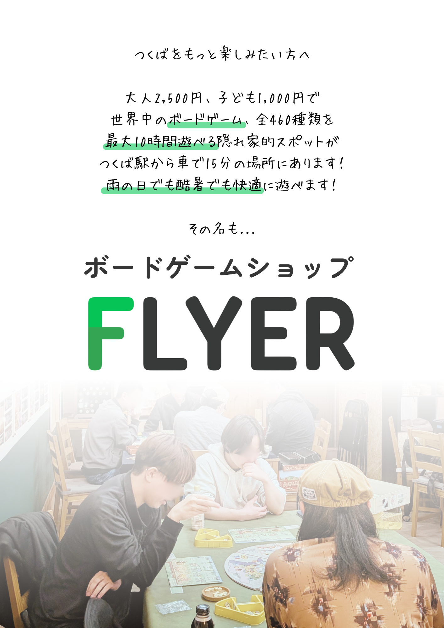 FLYERはつくば市下広岡にあるボードゲームショップです。世界中のボードゲームで遊ぶことができます。GWの遊び場所としてFLYERを推す理由を紹介します。